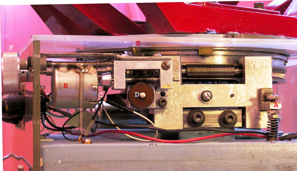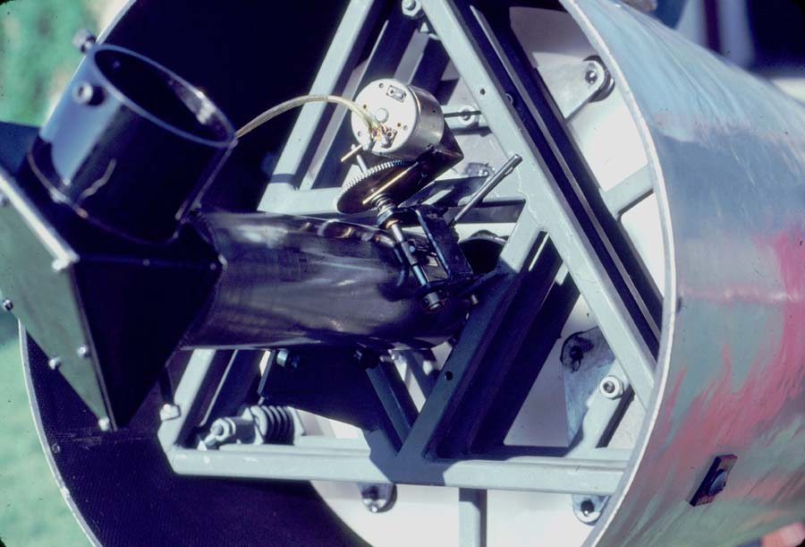 shows the mirror mount and focus mechanism. The mount, made